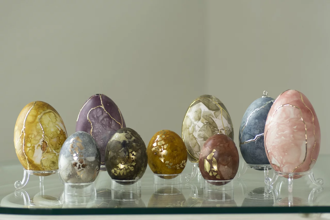 Die Gestaltung der Gänseeier ist inspiriert von Kintsugi- Kunst,